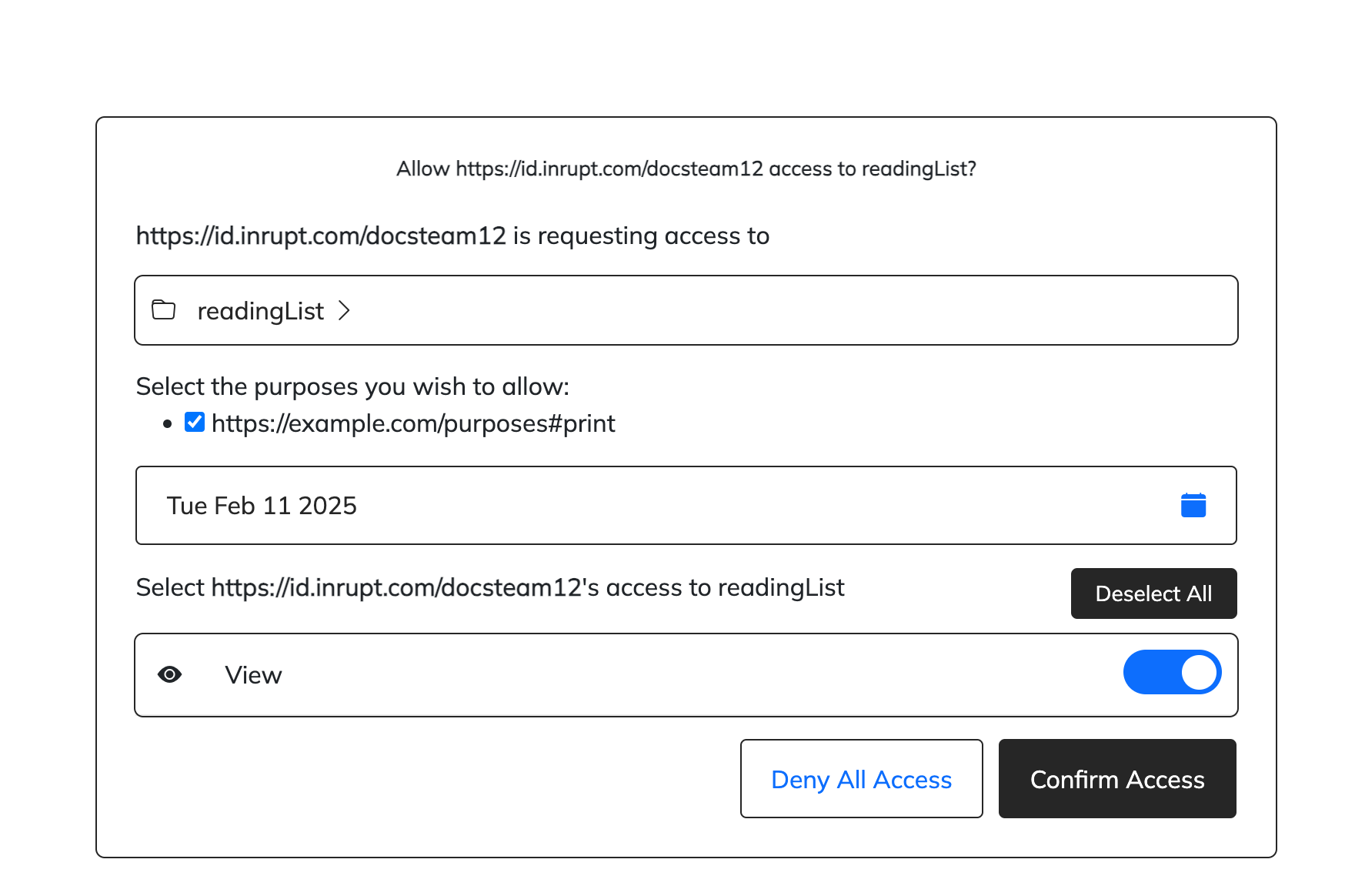 Inrupt’s Authorization Management Component (AMC) is a reference component to show best Engineering and UX practices for managing [Access Requests and Grants](https://docs.inrupt.com/security/authorization/access-requests-grants). Inrupt provides a hosted version of AMC at <https://amc.inrupt.com>.